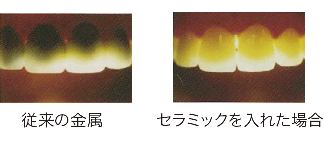 最新の優れたセラミックを使用しているので、天然歯の色調・透明感を再現した、自然な美しい白さを実感していただける仕上りとなります。